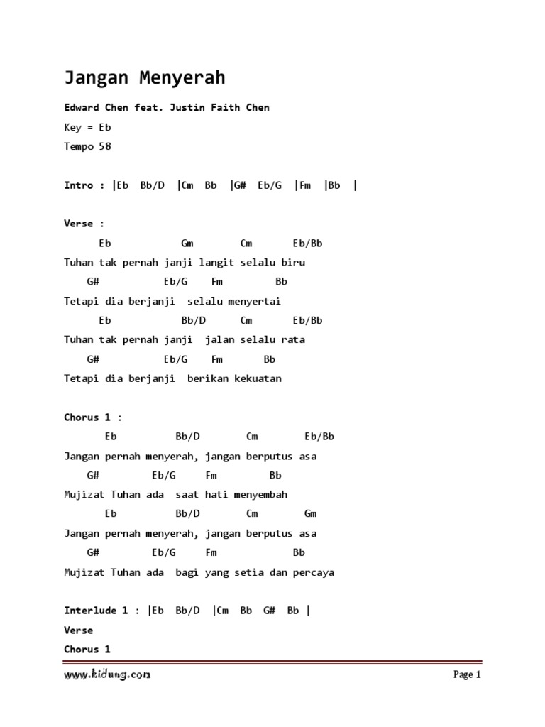 Lirik Lagu Tuhan Tak Pernah Janji Langit Selalu Biru Jangan Pernah Menyerah Justin Edward Chen Chords Chordify
